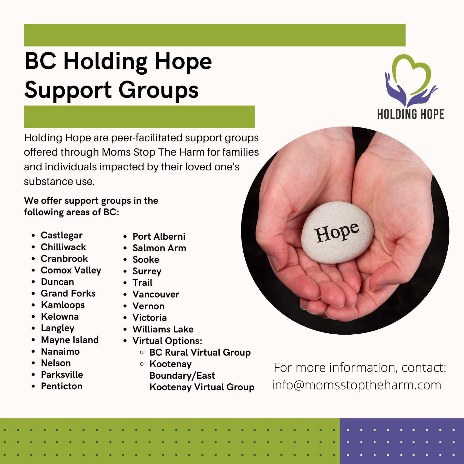 Holding Hope Peer Support Groups are for parents, spouses, siblings, and friends supporting loved ones impacted by substances.